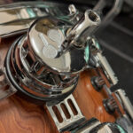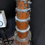 2. Das Shellset umfasst noch die Doppel-Tomhalterung für das 10″ und das 12″ Tom, den Tomarm mit Memoryklemme für das 14″ Tom und die drei Beine des 16″ Toms. Das 14″ Tom fungiert wie ein Stamdtom, ist aber freischwingend. Die Original Sonor Bass Drum Rosette wurde nach der Auslieferung noch nachträglich fachmännisch angebracht.