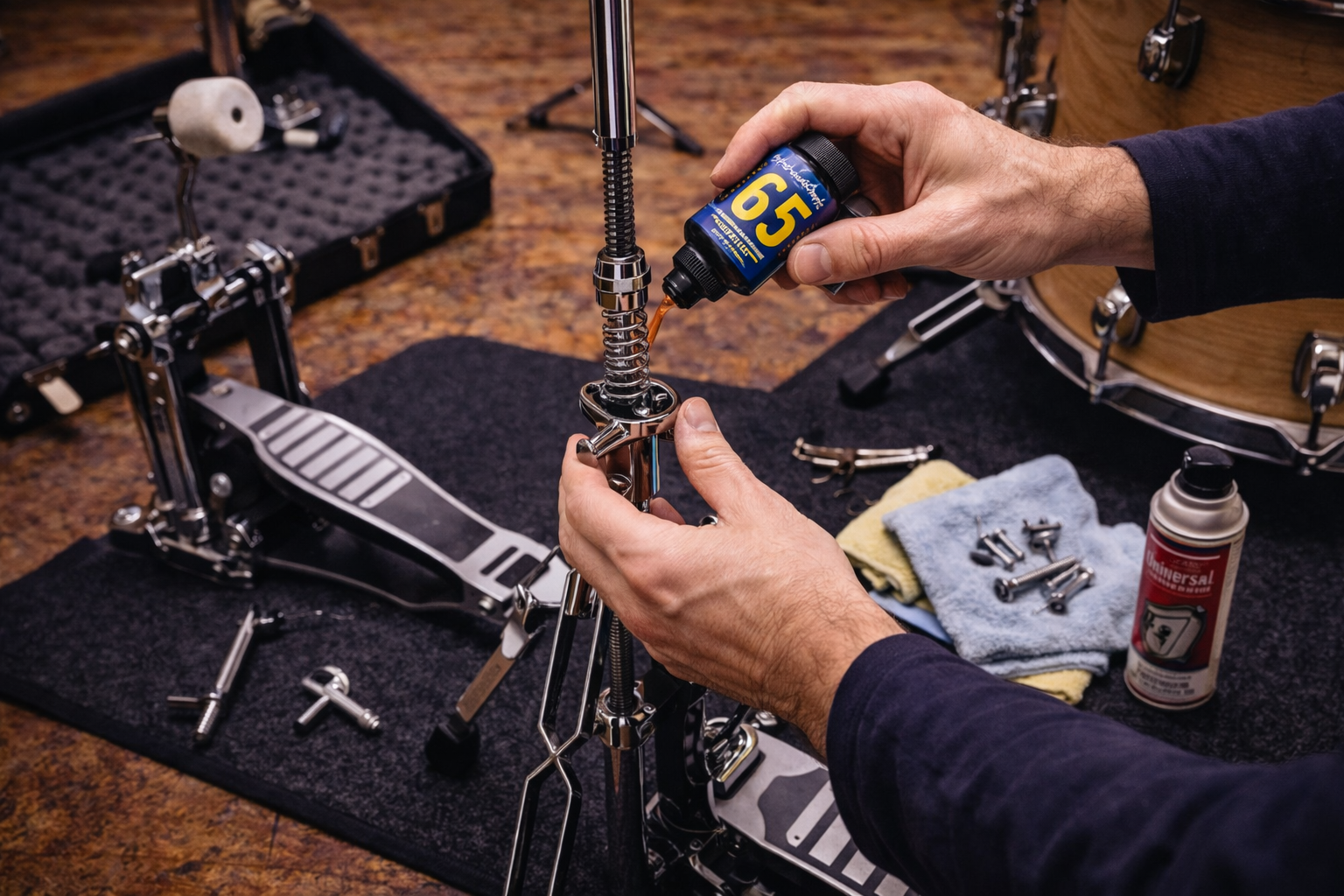 Quietschende Pedale, schwergängige Stative oder wackelige Klemmen kommen selten plötzlich – sie sind fast immer das Ergebnis fehlender Pflege. Dabei ist Drum-Hardware dafür gemacht, jahrelang zuverlässig zu funktionieren, wenn man ihr ein bisschen Aufmerksamkeit schenkt.