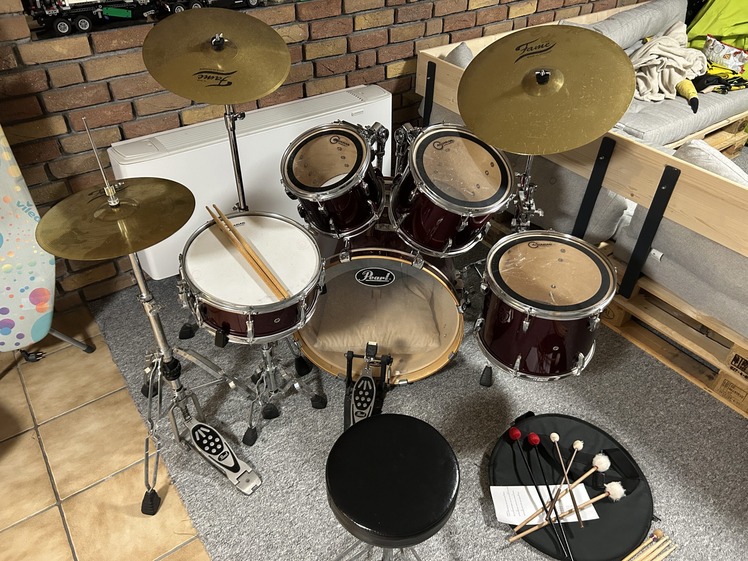 Ein Standard-Schlagzeug besteht aus Trommeln, Becken und Hardware. Die Trommeln setzen sich typischerweise aus einer Bassdrum, einer Snaredrum, zwei Tom-Toms und einer Standtom zusammen. Zu den Becken gehören die Hi-Hat, das Crashbecken und das Ridebecken; bei manchen Sets ist anstelle von Crash- und Ridebecken zunächst ein universell nutzbares Crash-Ride vorhanden. Zur Hardware zählen alle Ständer und Halterungen wie die Hi-Hat-Maschine, ein oder zwei Beckenständer, das Snare-Stativ und die Fußmaschine für die Bassdrum. Wer beim Aufbau unsicher ist, findet in Aufbau-Ratgebern hilfreiche Tipps für eine ergonomische und effiziente Positionierung; Gleiches gilt für das Stimmen der Trommeln. Auch im Drummerforum findet man viele praktische Hinweise und Erfahrungsberichte von anderen Drummern.