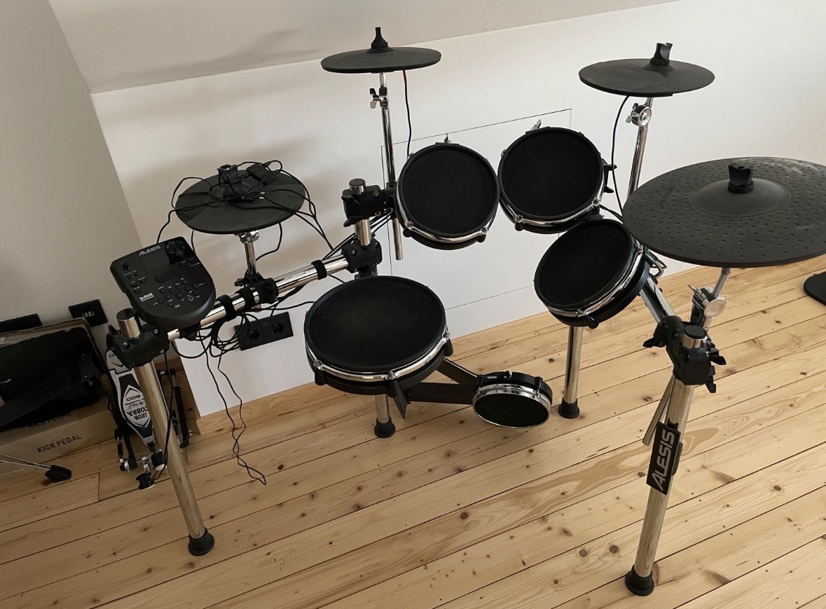 Verkaufe mein Alesis Surge Mesh Kit mit einer Tama Iron Cobra 600 Double Fußmaschine sowie einem zusätzlichen Crashbecken