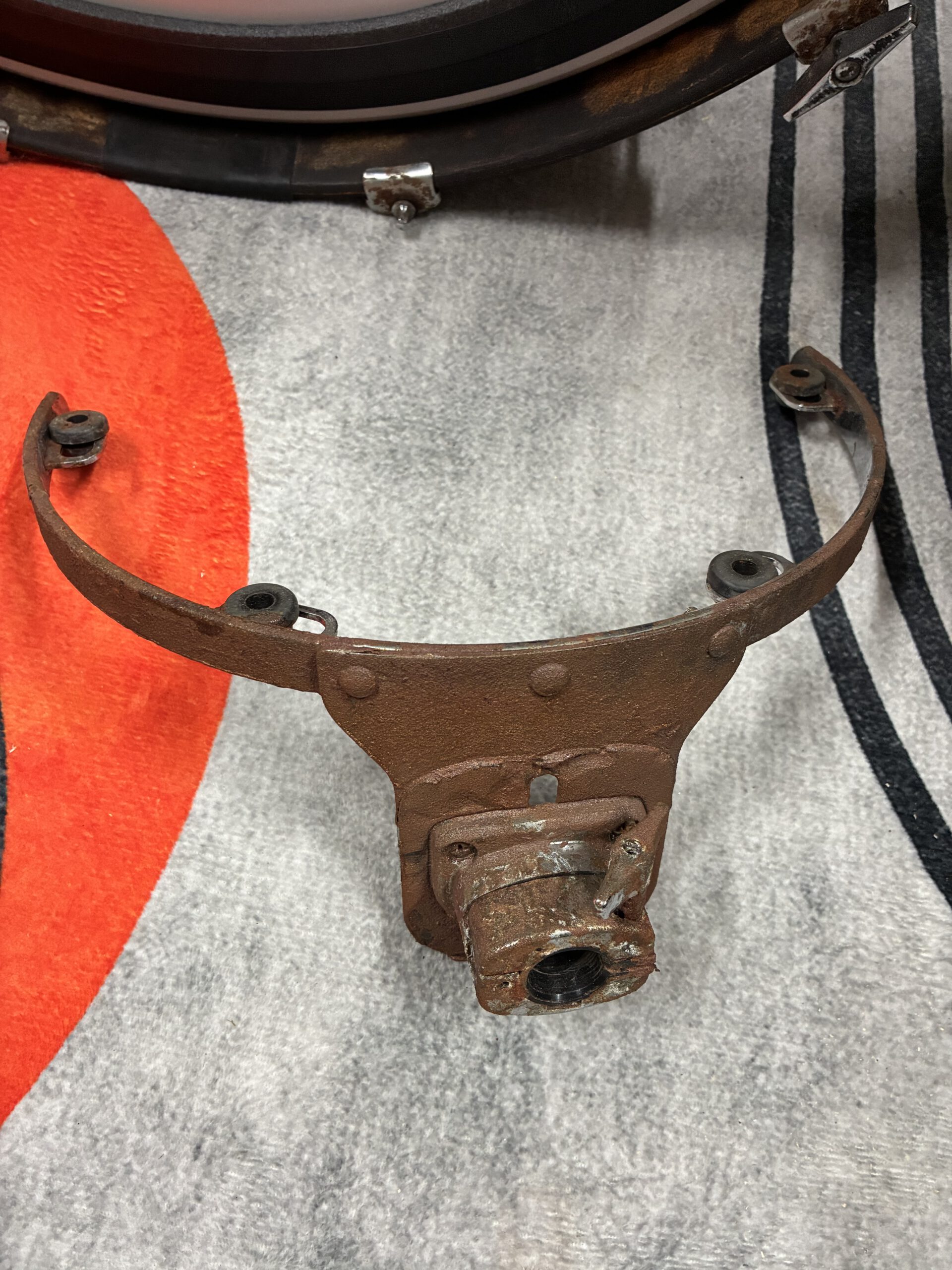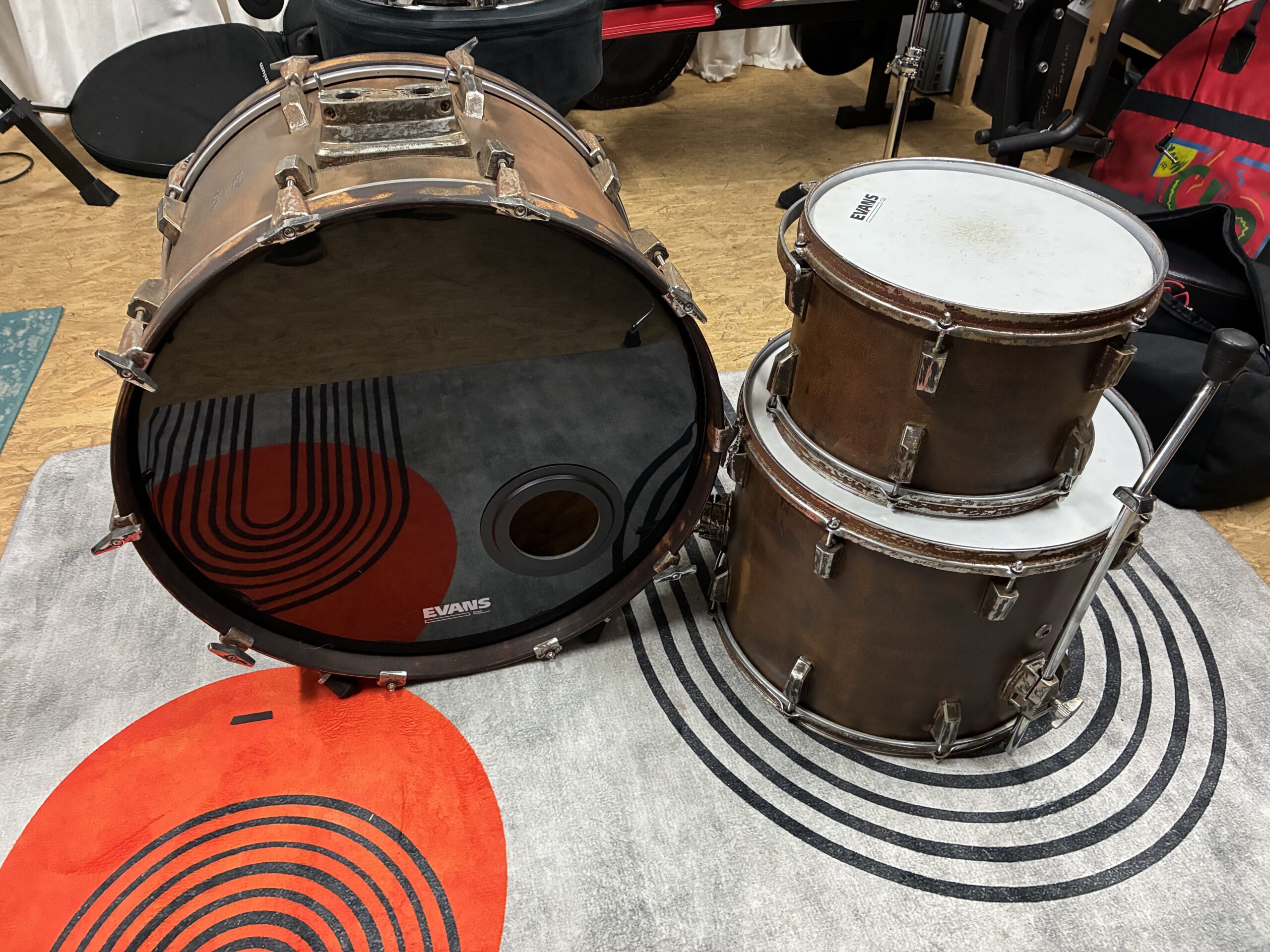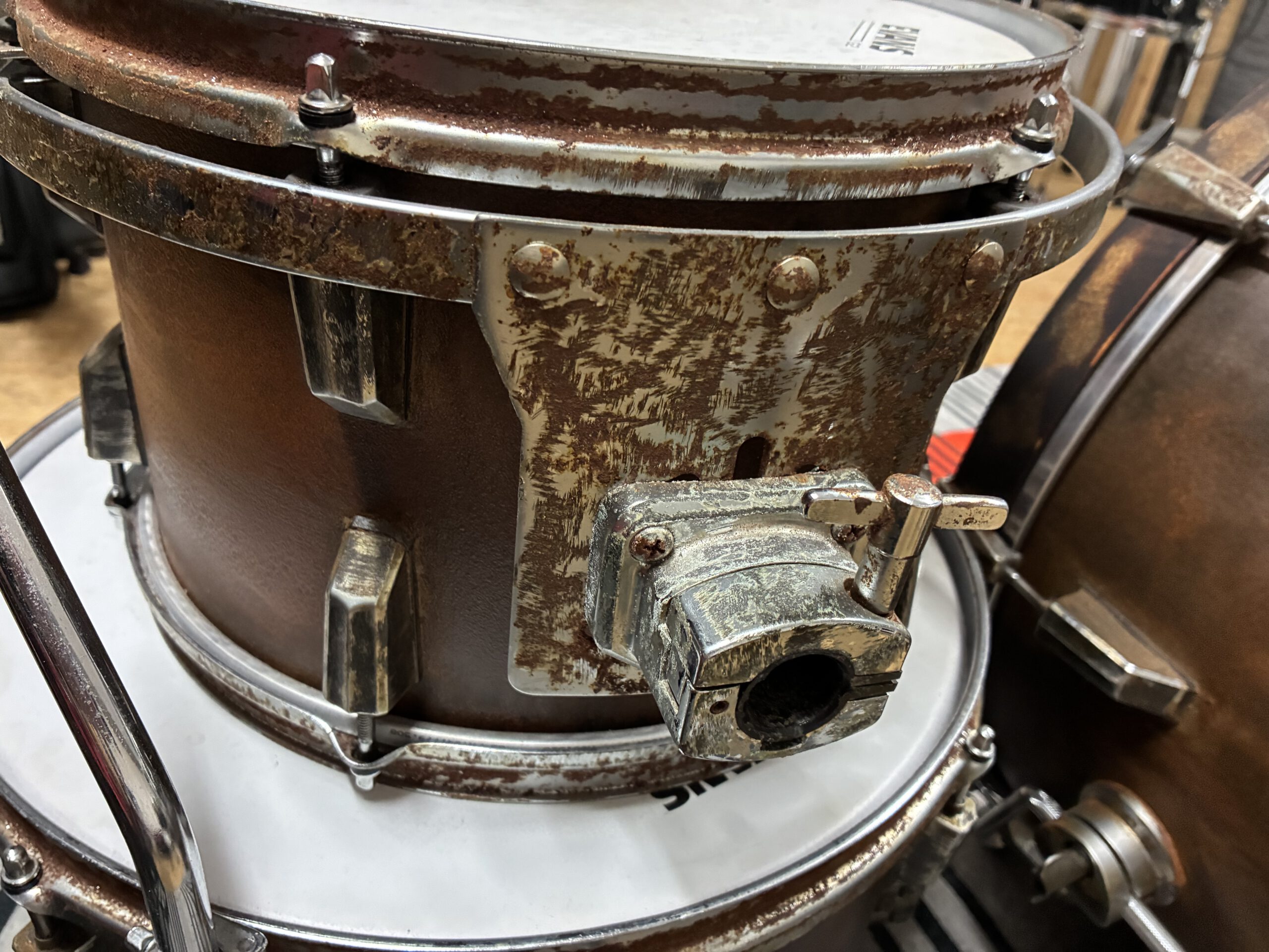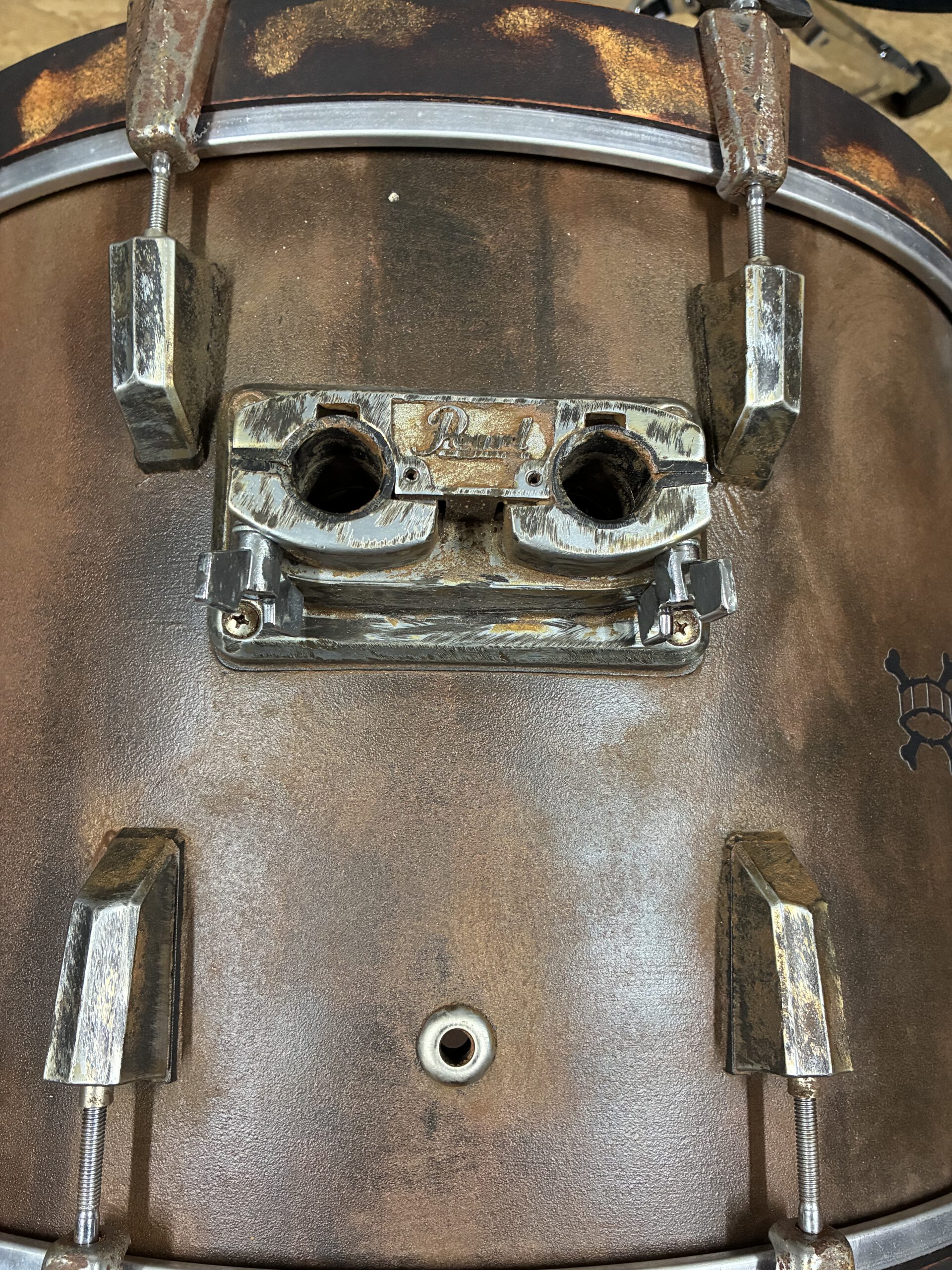 Verkaufe hier ein Customset im “Rusty- Finish”. Das Set besteht aus Pearlkesseln und wurde von der Schlagzeugbetreuung Berlin (Pommerenke) über-/ bearbeitet. Das Finish wurde gezielt so gewählt, tatsächlich ist aber kein “richtiger” Rost anzutreffen. Das Set wurde auf Rost gemacht. Weiterhin wurden die Gratungen perfekt gearbeitet und das Set produziert einen klasse Rocksound. Das 10″ Tom wurde etwas später gefertigt und ist daher im Finish ein klein wenig anders was jedoch auf der Bühne nicht auffällt. Racktoms sind mit Rims ausgestattet. Wichtig zu wissen und zu beachten: leider fehlt ein Standtombein. Das lässt sich aber bestimmt besorgen. Das Set kommt 4-teilig daher, ohne Snare. Felle sind schon gespielt, aber auf jeden Fall noch in Ordnung. Wer als ein Bühnentaugliches Set und einen Eyecatcher für die Bühne sucht, das zudem auch noch hervorragend klingt, der wird hier fündig. Am liebsten wäre mir hier eine Abholung des Sets bei mir, ggf. könnte man sich auch zu einer Übergabe treffen; dies sollten wir dann aber konkret absprechen. Versandkosten müssten abgesprochen werden. Trommeln sind 22″ mit Rosette, 10″, 12″, 16″.