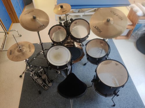 - 18”x22” Kick/ 5×14” Snare/ 7”x8”, 7.5”x10”, 8”x12” Toms/ 16”x16” Floor Tom