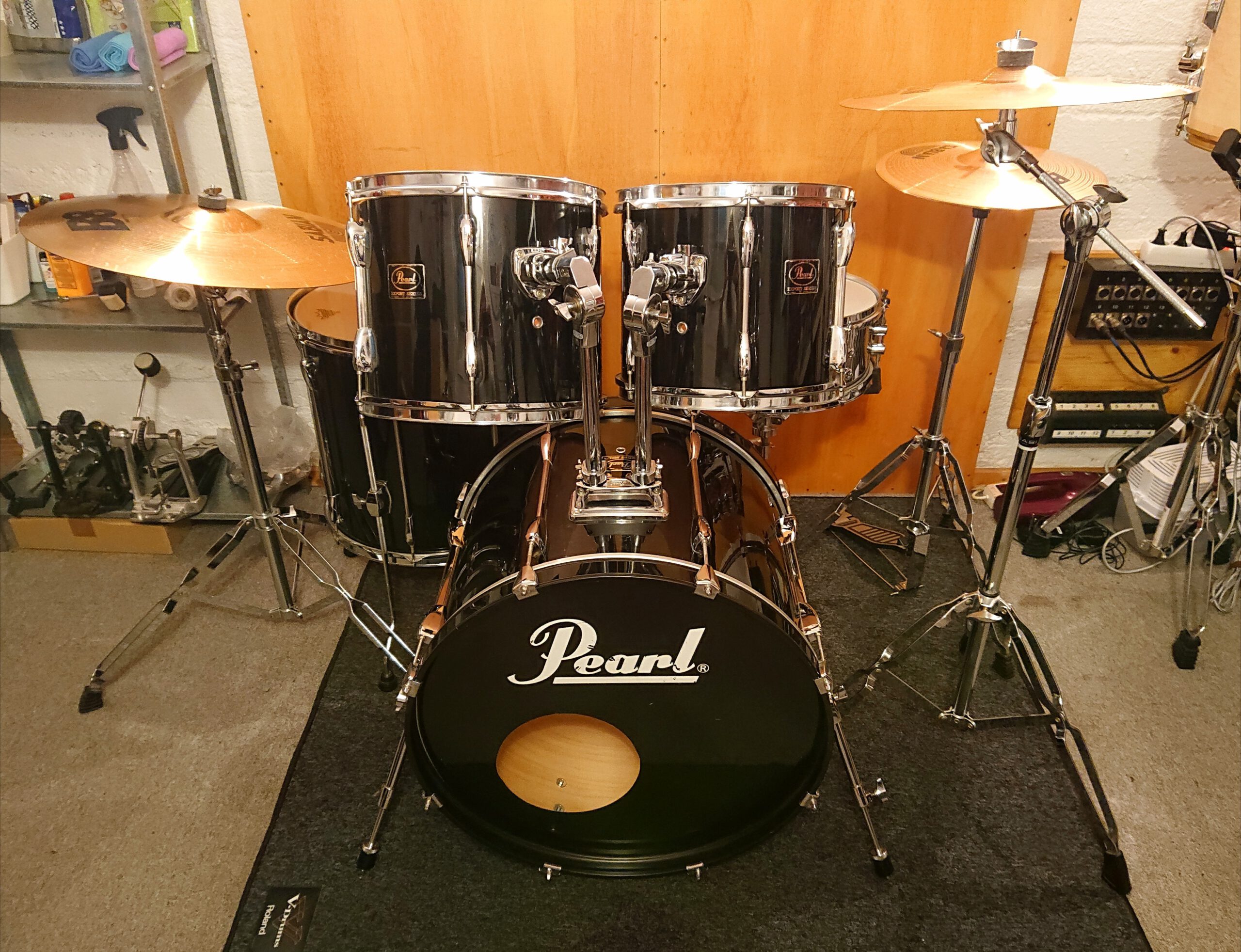 Pearl Export 90’s Schlagzeug Drumset in schwarz Rock Größen + Remo Ambassador Fellset und Sabian B8 Beckenset