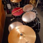 Kessel: 20″ BD – 10-12-14″ Toms + 14×5″ Snare (Evans Hydraulic Fell in Rot)