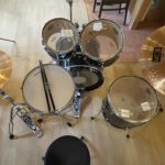 Felle haben deutliche Gebrauchsspuren, sind aber noch gut bespielbar. Können natürlich auch gewechselt werden. Das eigentliche Schlagzeug und Becken sind in einem gebrauchten aber guten Zustand.