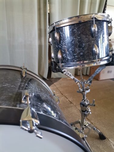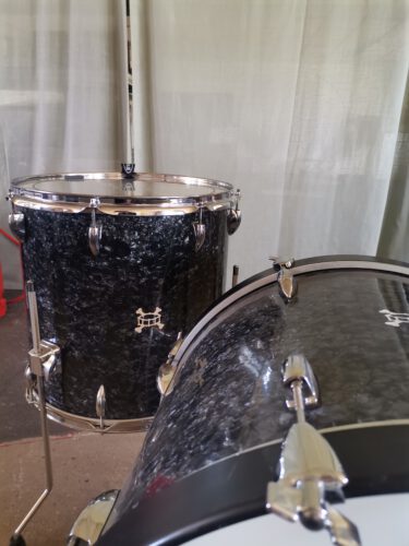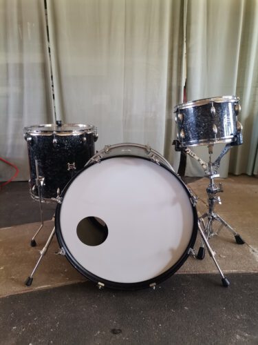 Es handelt sich um Schichtholz-Mahagoni Kessel. Die Kessel wurden in den 70er Jahren in Japan hergestellt und von der Schlagzeugbetreuung neu aufbereitet. Die Gratung (Fellauflagekante am Kessel) wurde erneuert und etwas abgerundet. Dadurch eignet sich das Schlagzeug sowohl für Rock als auch für Jazz. Die Kessel wurden zudem komplett abgeschliffen, von innen geölt und gewachst und von Außen mit einer schicken Black Pearl Vinyl Folie neu eingekleidet.