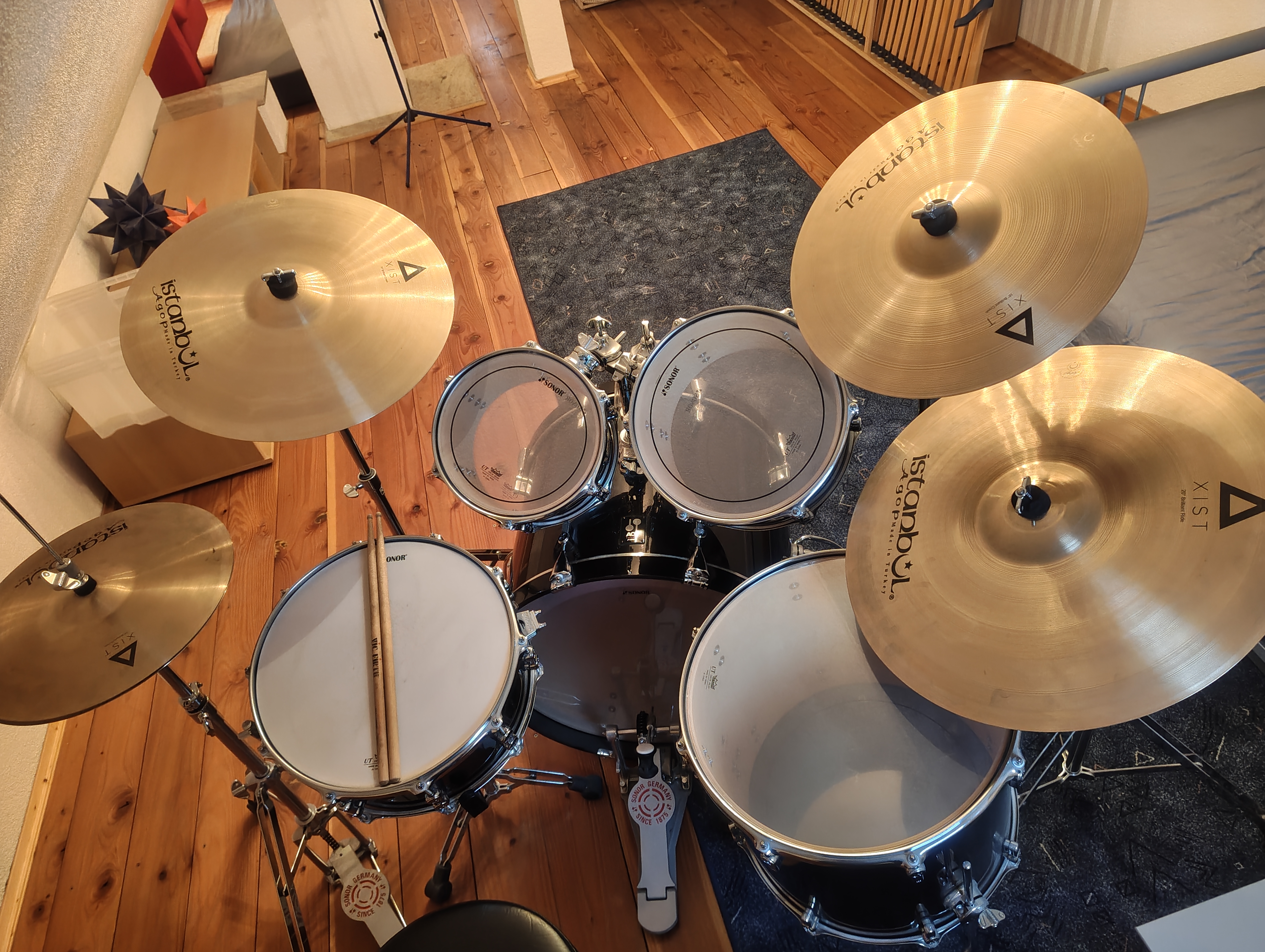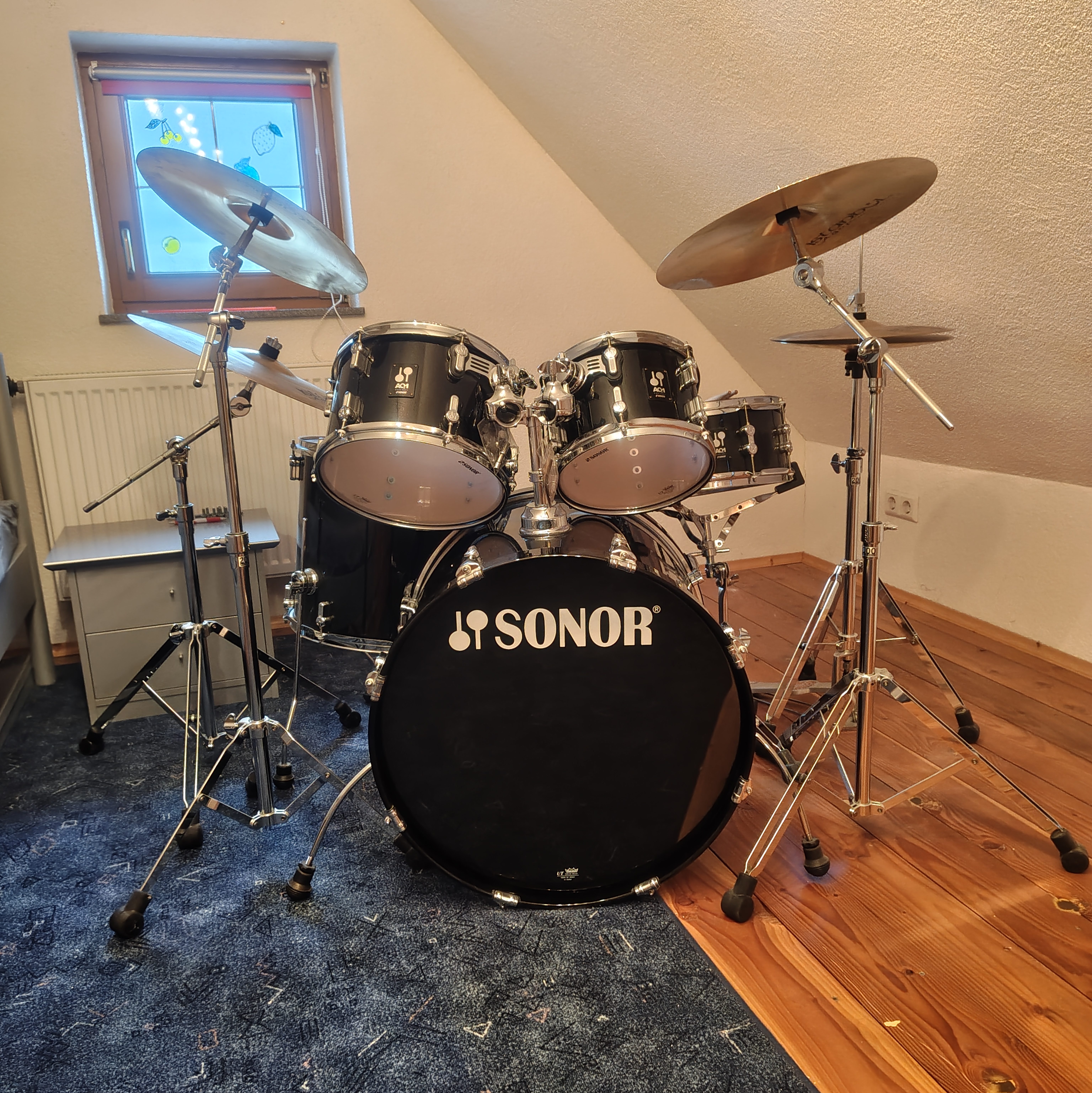 Ich verkaufe mein komplettes Sonor AQ1 Stage Set PB (Piano Black, 5-teilig) inklusive Istanbul Agop Xist Brilliant 4er Becken-Set mit passender Rucksacktasche sowie weiterem Zubehör.