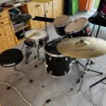 Das Set ist komplett vorhanden, die Floor Tom und die Snare Drum haben vor 2 Monaten neue Felle bekommen.