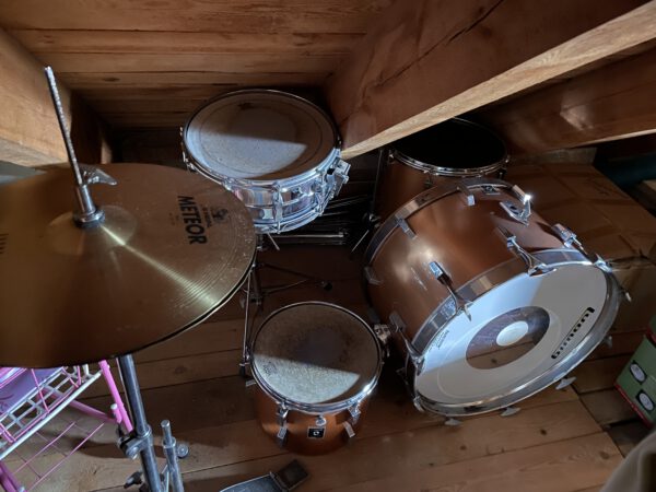 Da das Schlagzeug sehr lange nicht gespielt wurde, wäre eventuell eine Aufarbeitung nötig. Es wurde aber sehr pfleglich behandelt und ist deshalb in gutem Zustand. Die Snare ist top, ein nahtlos gezogener Ferromanganstahlkessel.