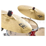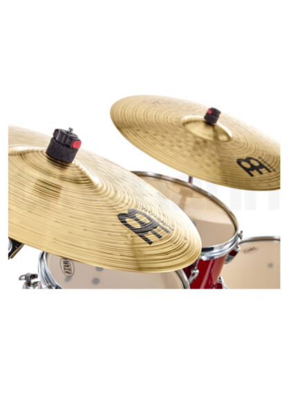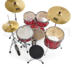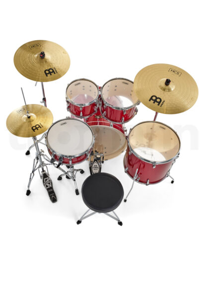 Das Schlagzeug besteht aus 5 Trommeln (Bassdrum, Snare, 2 Toms und 1 Floortom) sowie 5 Stativen für Becken, Snare und Floor Tom. Es ist stabil, leicht aufzubauen und ideal zum Proben oder für kleine Auftritte.