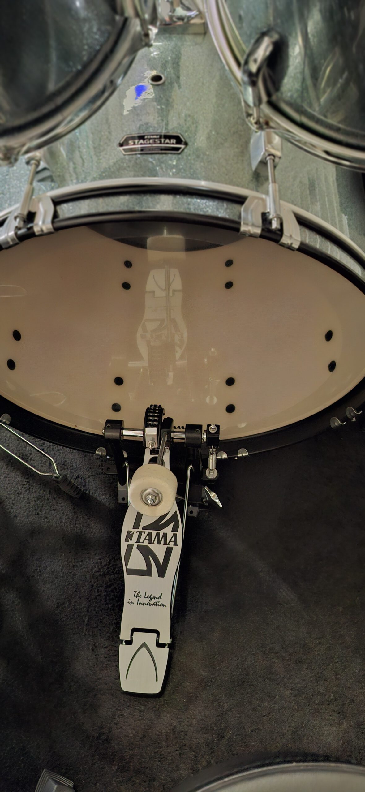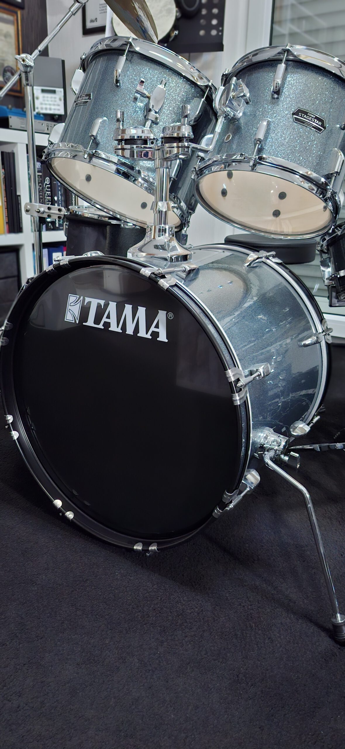 Ich verkaufe mein TAMA Stagestar Drumset in der Farbe Sea Blue Mist.